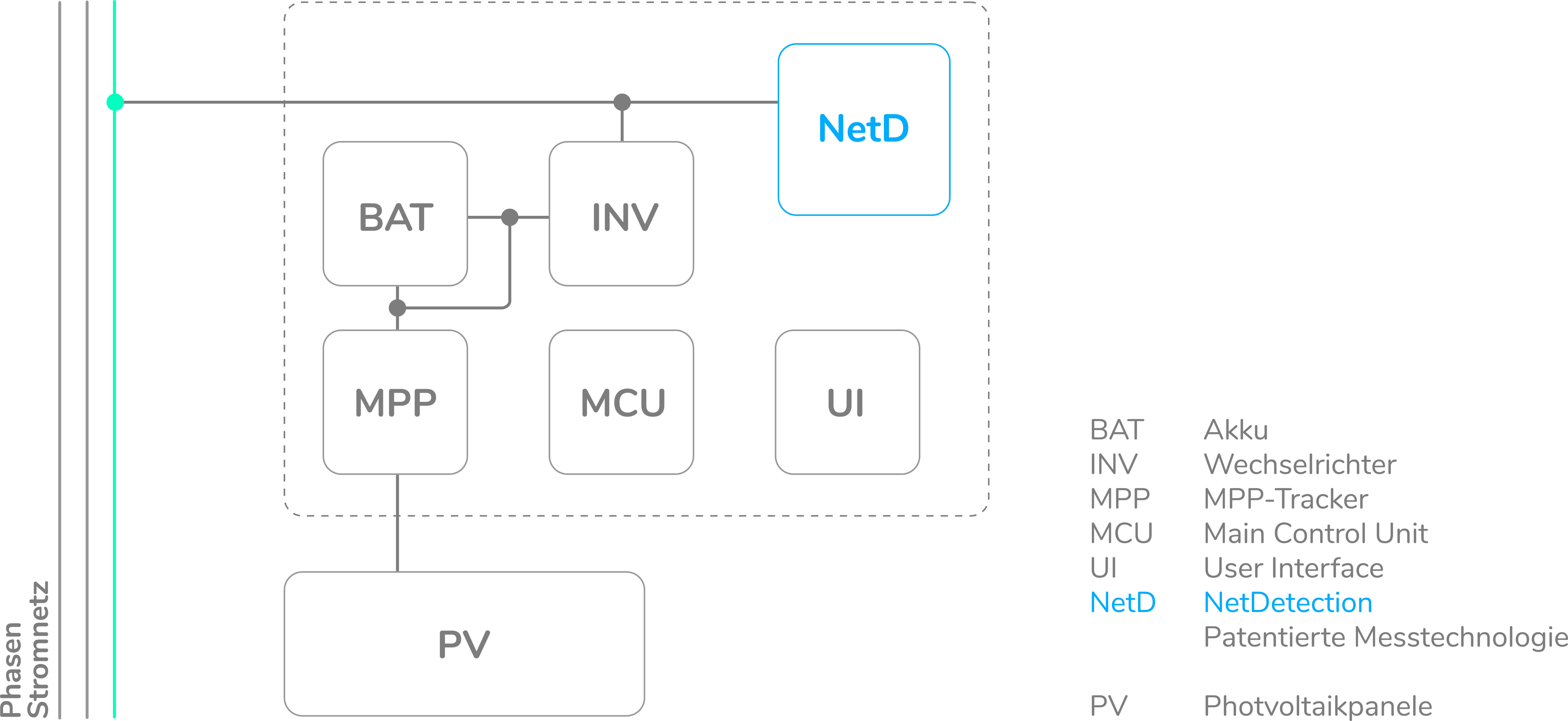 Die Panele werden über ein Kabel mit dem Speicher verbunden und dieser wird bei einer gewöhnlichen Steckdose angesteckt. Der selbst erzeugte Strom fließt anschließend über diese Steckdose direkt in das hauseigene Stromnetz. Somit steht er der gesamten Wohnung zur Verfügung.